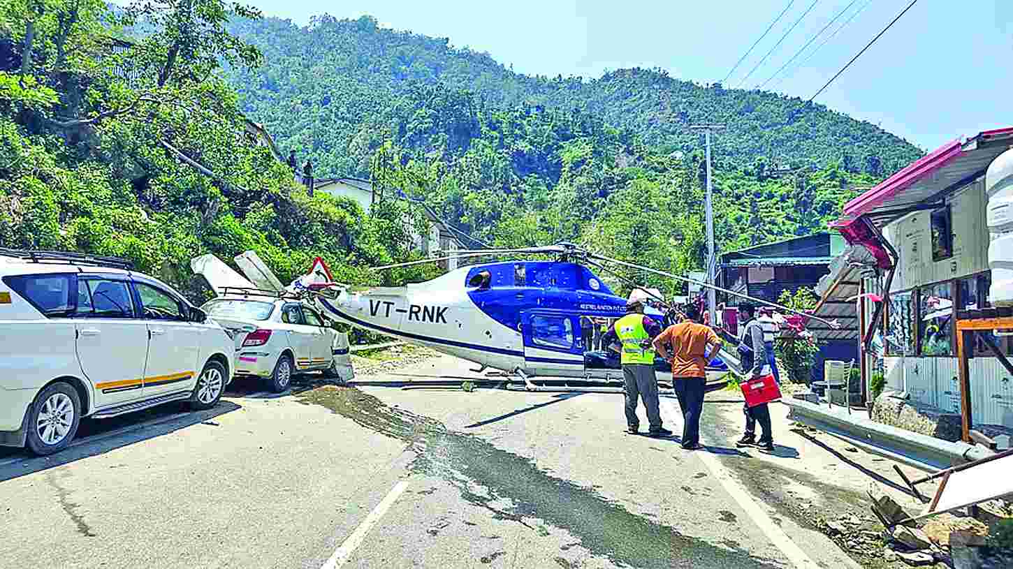 ઉત્તરાખંડમાં તાકીદનાં ઉતરાણ બાદ હેલિકૉપ્ટર તૂટી પડયું